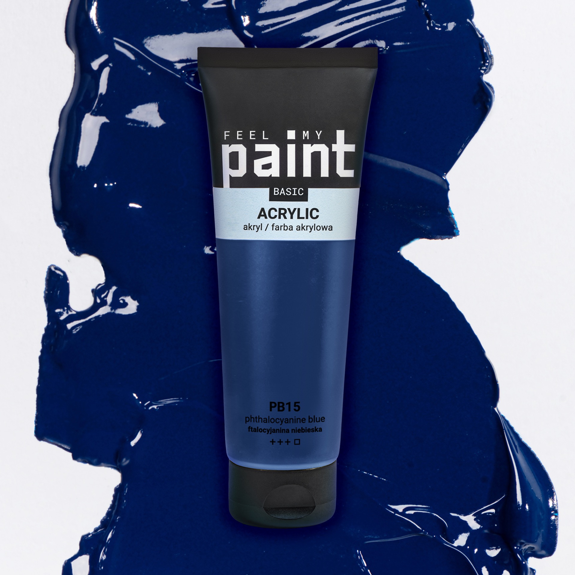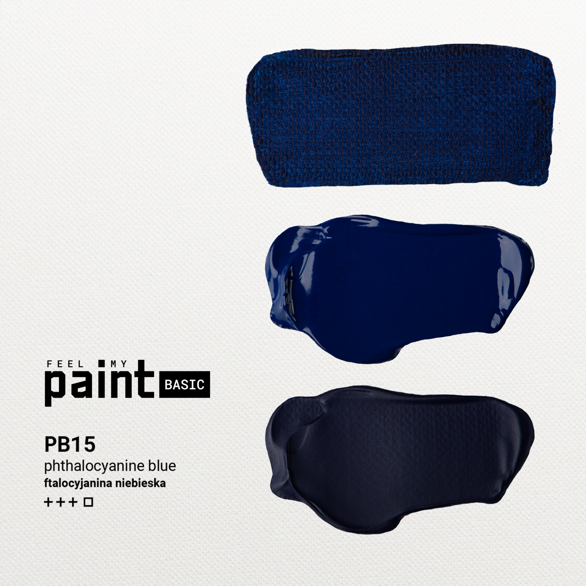 Phthalocyanine Blue je intenzívna modrá farba vytvorená pigmentom ftalocyanínová modrá (PB15). Vyniká vysokou farebnou silou a čistotou tónu, ideálna na miešanie širokej škály modrých a zelených odtieňov aj na sýte farebné plochy. Farba má transparentné krytie, ktoré umožňuje výrazné a žiarivé vrstvenie.