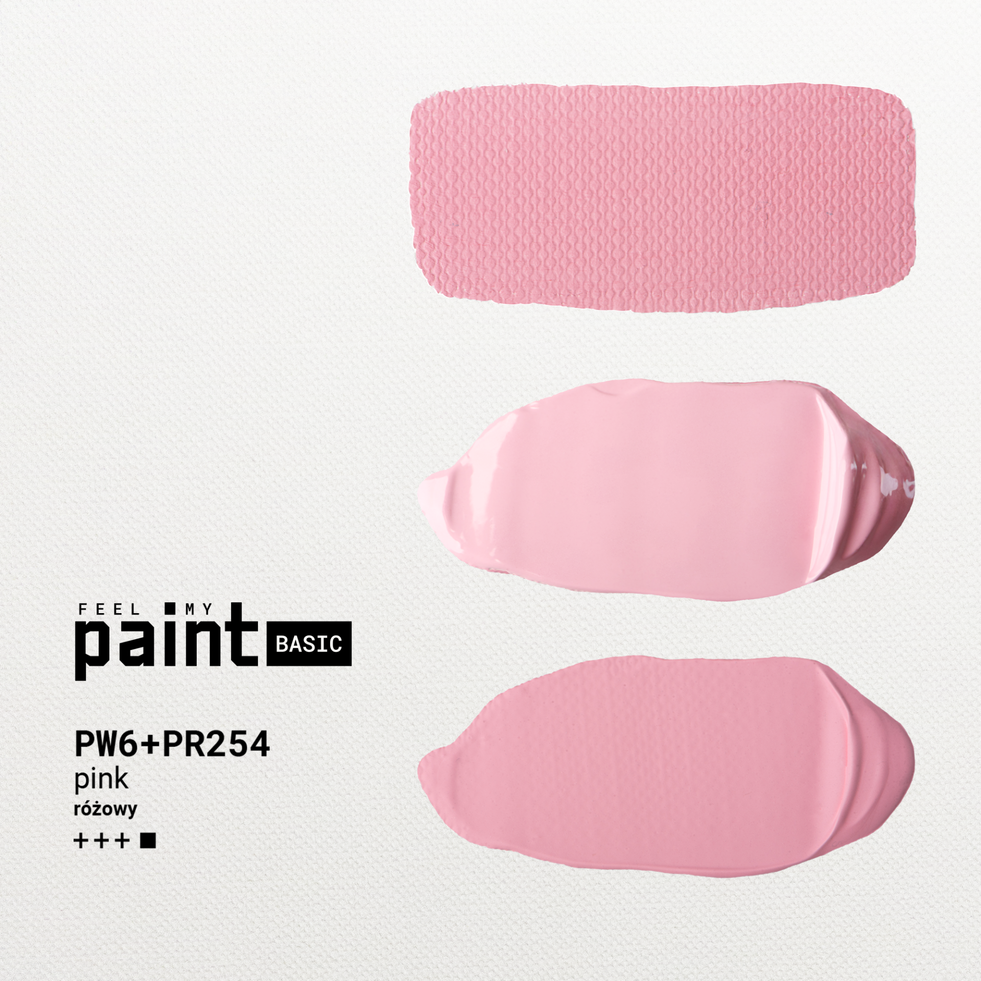 Pink je jemný ružový odtieň vzniknutý kombináciou titánovej bielej (PW6) a červeného pigmentu (PR254). Pôsobí nežne a sviežo, vhodný na svetlé akcenty, kvetinové motívy aj pastelové farebné kompozície. Farba má nepriehľadné krytie, ktoré zabezpečuje rovnomerné a plné nanesenie.