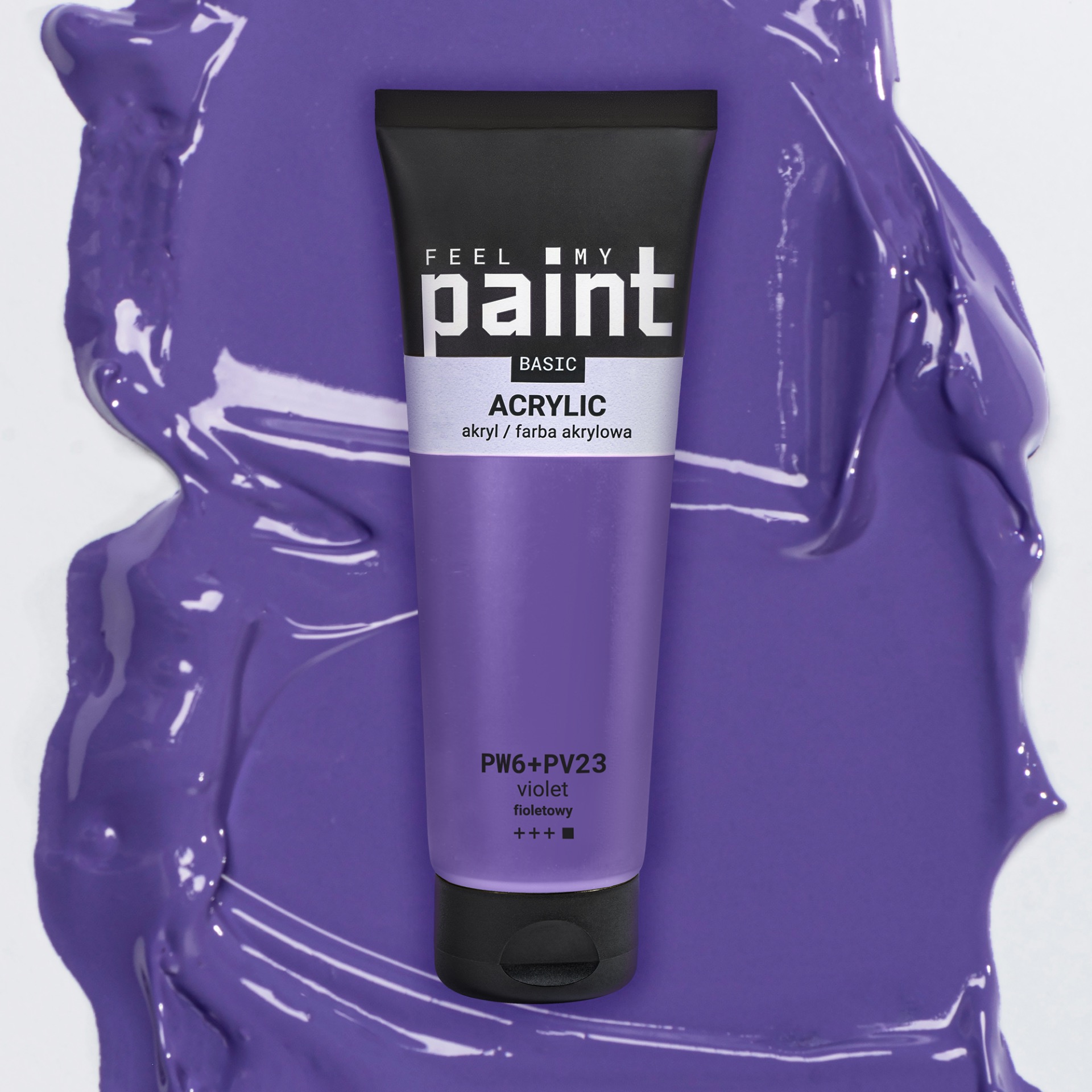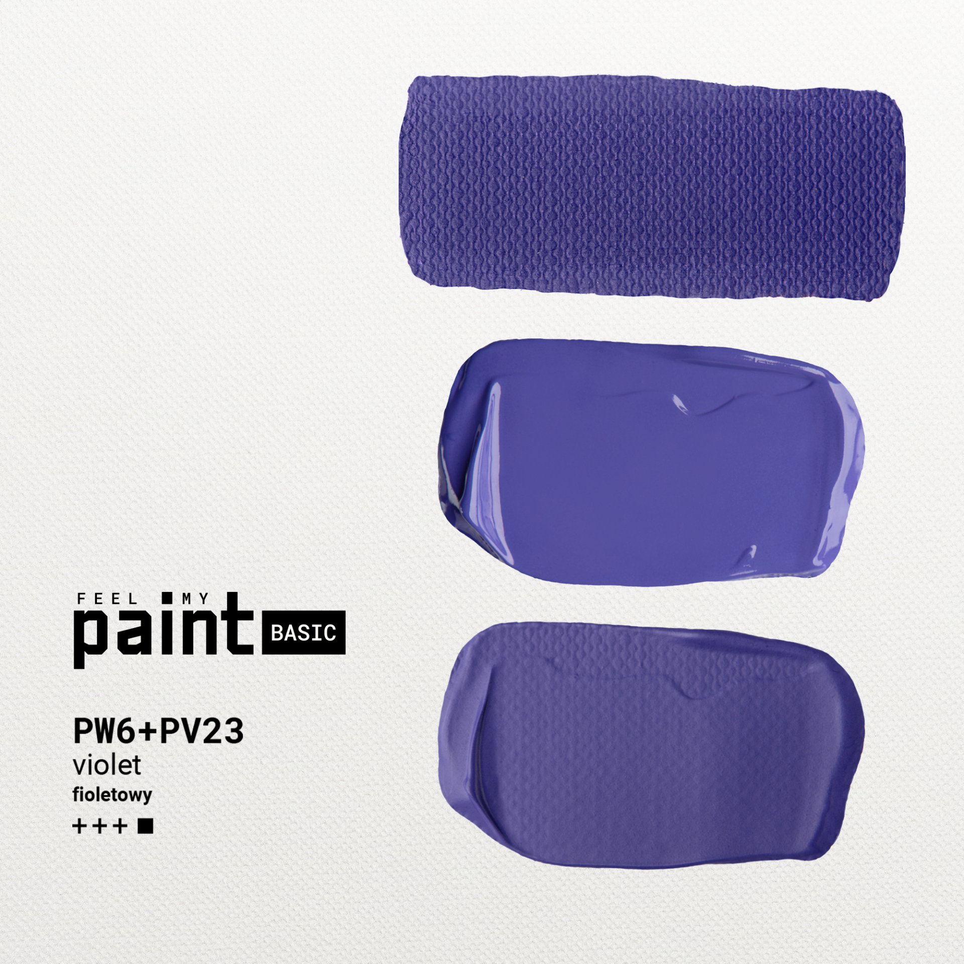 Violet je jemný fialový odtieň vzniknutý kombináciou titánovej bielej (PW6) a dioxazínovej fialovej (PV23). Pôsobí mäkko a harmonicky, vhodný na kvetinové motívy, pastelové kompozície aj miešanie tlmených tónov. Farba má nepriehľadné krytie, ktoré zabezpečuje rovnomerné nanesenie.